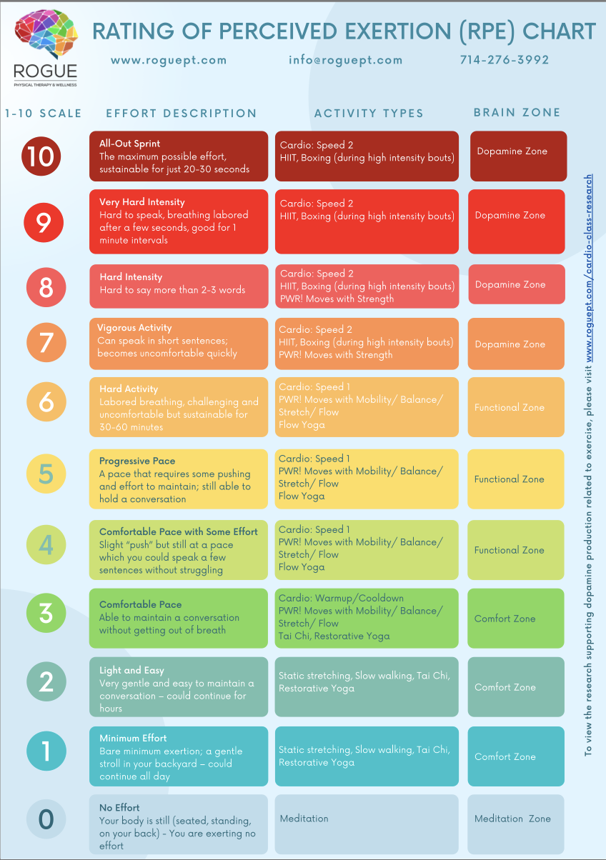 We made an RPE Chart to help you monitor your intensity during exercise!