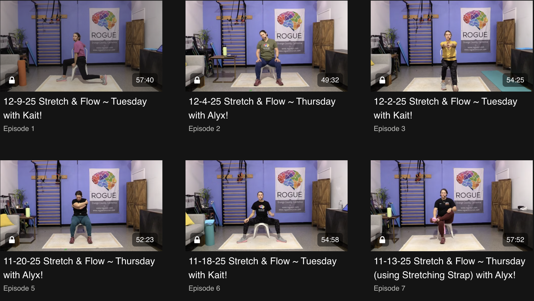 Live Zoom classes are offered five days a week, allowing you to move alongside others and stay connected to the Rogue in Motion community.