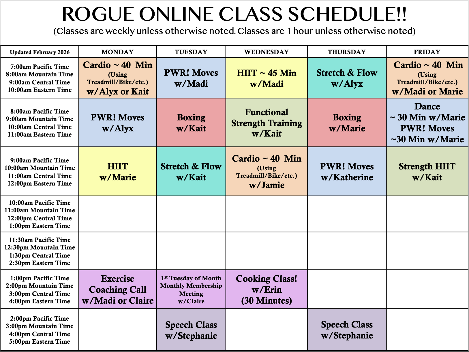 Rogue Online Class Schedule